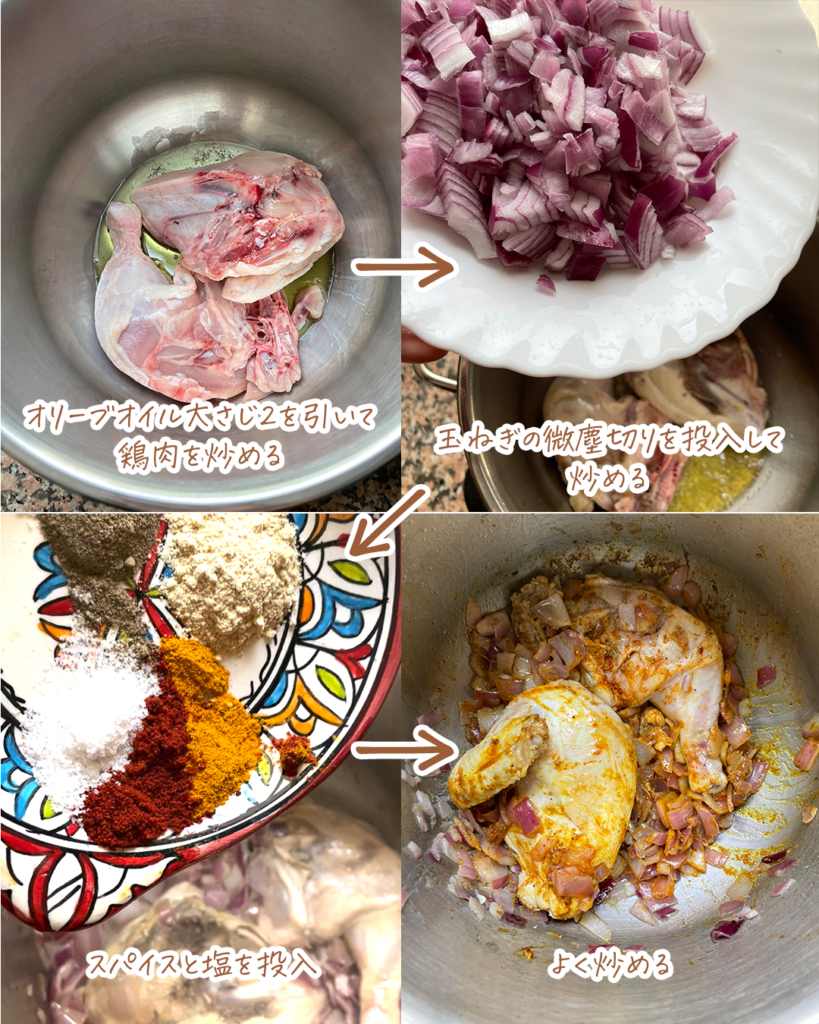 ひよこ豆は水に漬ける、肉は冷凍していたなら解凍しておく、忘れてその日慌てて作るとやっぱり味に影響してしまいます。