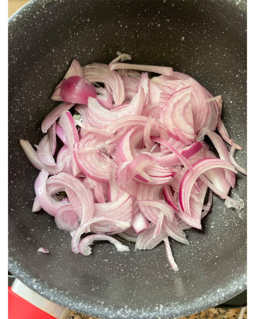 スライスした玉ねぎを炒める